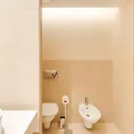 Die Salgados Premium Beach Villa By Da'Home verfügt über ein Badezimmer mit einem Bidet und einer Dusche. Es gibt einen Haartrockner, eine Duschhaube und Handtücher für den Komfort der Gäste.